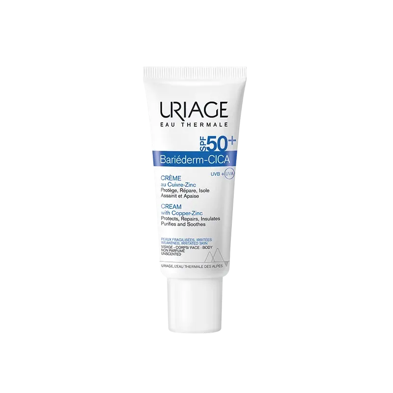 URIAGE Bariéderm Cica-Crème SPF50+ 40ml est un soin réparateur isolant et protecteur, spécialement conçu pour les peaux fragilisées, irritées ou ayant subi des agressions cutanées (petites plaies, post-actes dermatologiques, irritations diverses) qui sont exposées au soleil. Sa formule unique combine réparation et très haute protection solaire pour prévenir les marques post-cicatricielles.