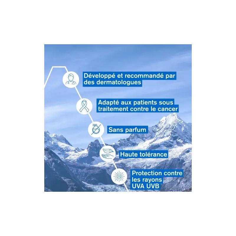 Un soin réparateur et protecteur (SPF50+) pour les peaux fragilisées, irritées ou lésées exposées au soleil. Il répare intensément (GF-Repair, D-Panthénol), prévient les taches pigmentaires post-cicatricielles, purifie (Cu-Zn) et apaise (Eau Thermale d'Uriage), avec un fini non gras et une haute tolérance (sans parfum).