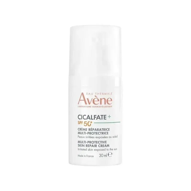 L'Avène Cicalfate+ Crème Réparatrice Multi-Protectrice SPF50+ 30ml est un soin 2-en-1 pour peaux fragilisées exposées au soleil. Il répare l'épiderme (grâce au [C+-Restore]™) et offre une très haute protection SPF50+ contre les UV pour prévenir les marques. Assainissante, apaisante (Eau Thermale d'Avène), sans parfum et haute tolérance, elle est idéale pour les adultes et enfants (dès 2 ans) après irritations ou actes dermatologiques.