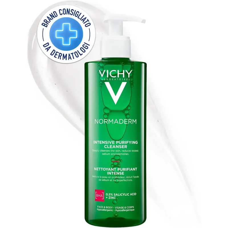 Le gel nettoyant purifiant Normaderm Phytosolution de Vichy est un soin du visage conçu pour les peaux grasses à tendance acnéique. Sa formule haute tolérance, d'origine végétale à 98 %, nettoie la peau en douceur sans l'agresser. Il élimine efficacement les impuretés, l'excès de sébum et les particules de pollution, tout en agissant sur les imperfections. Enrichi en minéraux et en probiotiques, il purifie la peau et aide à renforcer sa barrière cutanée. Sa texture gel se transforme en une mousse légère et facile à rincer, laissant la peau fraîche, nette et matifiée.