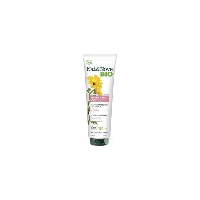 Le 2-en-1 Après-Shampooing Masque Doux Nat & Nove Bio au Calendula est le soin idéal pour hydrater, démêler et illuminer tous les types de cheveux en un seul geste.