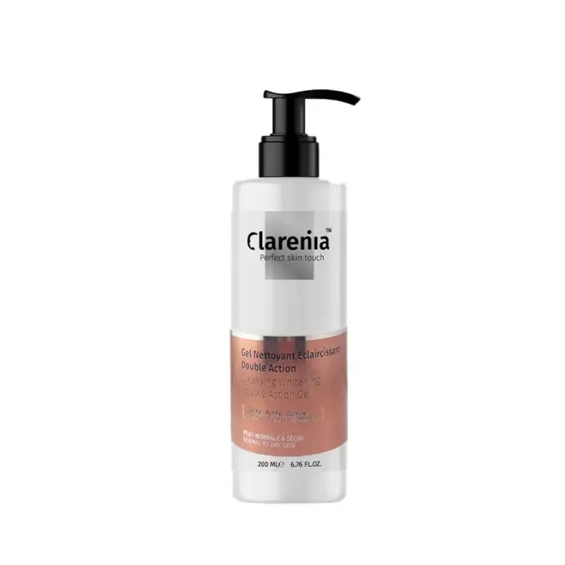 Le Gel Nettoyant Éclaircissant Double Action PNS Clarenia est un soin d'hygiène quotidienne conçu pour purifier et illuminer la peau. Sa formule unique à double action nettoie en profondeur tout en agissant sur les taches pigmentaires et l'uniformité du teint. Il élimine les impuretés, l'excès de sébum et les traces de maquillage sans dessécher la peau, la laissant fraîche, douce et visiblement plus lumineuse.