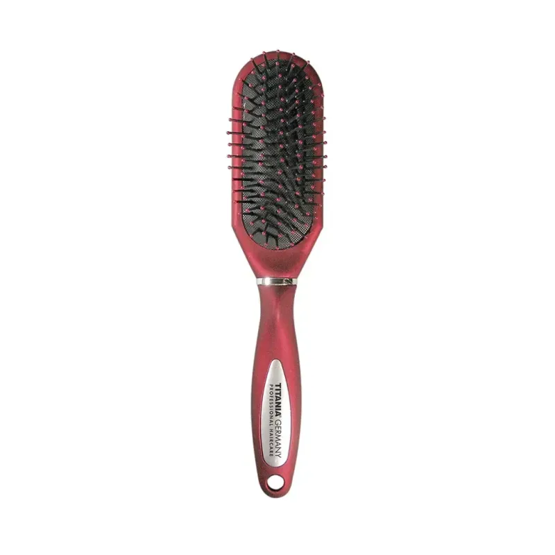 La Brosse Pneumatique Titania 1633 est un classique incontournable de la coiffure quotidienne, alliant sobriété et efficacité. Dotée de 7 rangées de picots robustes, cette brosse est montée sur un coussin d'air (système pneumatique) qui permet une souplesse d'utilisation remarquable : la pression exercée sur les cheveux est amortie, évitant ainsi d'agresser le cuir chevelu. Son format intermédiaire la rend extrêmement polyvalente, capable de démêler les nœuds en douceur tout en lissant la fibre capillaire. Chaque picot est terminé par une petite boule de protection qui assure un massage délicat du cuir chevelu, favorisant ainsi la relaxation et la circulation sanguine à chaque passage.