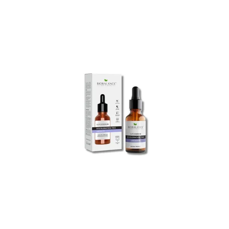 Ciblez efficacement les taches et l'hyperpigmentation avec le Biobalance Super Serum Discoloration Free 30ml. Ce sérum puissant est spécialement conçu pour les peaux sujettes aux taches brunes, aux cicatrices d'acné, au mélasma et à toute forme de décoloration cutanée. Sa formule avancée combine des actifs éclaircissants et unifiants pour réduire visiblement l'apparence des taches existantes et prévenir l'apparition de nouvelles. Il agit en synergie pour inhiber la surproduction de mélanine, responsable des taches pigmentaires, tout en favorisant un renouvellement cellulaire doux. Léger et rapidement absorbé, ce sérum laisse votre peau plus uniforme, lumineuse et éclatante, révélant un teint visiblement amélioré et plus homogène. Intégrez-le à votre routine quotidienne pour retrouver une peau sans défaut et un teint rayonnant.
