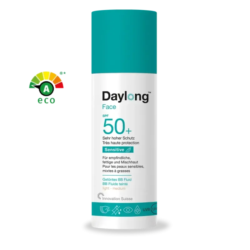 DAYLONG FACE SPF 50+ BB TEINTE LIGHT MEDIUM 50ML est un fluide teinté quotidien qui combine une très haute protection solaire et les bénéfices d'une BB crème, spécialement conçu pour les peaux sensibles, mixtes à grasses, voire à tendance allergique au soleil. Il offre une solution tout-en-un pour protéger, unifier et matifier le teint.