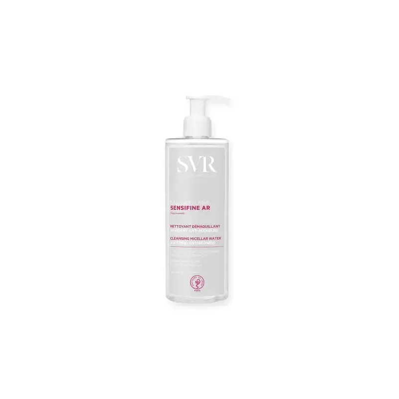 L'eau micellaire SENSIFINE AR de SVR est un soin nettoyant et démaquillant spécialement formulé pour les peaux sensibles, réactives et sujettes aux rougeurs. Sa formule minimaliste, contenant seulement 9 ingrédients, élimine efficacement les impuretés et le maquillage, même waterproof, sans irriter la peau. Enrichie en agents hydratants et apaisants, elle calme immédiatement les sensations de chaleur et les rougeurs. Les micelles, de petites sphères de tensioactifs, captent et dissolvent les impuretés et le maquillage, laissant la peau parfaitement propre et fraîche. Cette eau micellaire est un véritable allié pour la routine de nettoyage quotidienne, car elle respecte le film hydrolipidique de la peau et apporte une sensation de confort instantané. Elle ne nécessite pas de rinçage, ce qui la rend pratique et rapide d'utilisation.