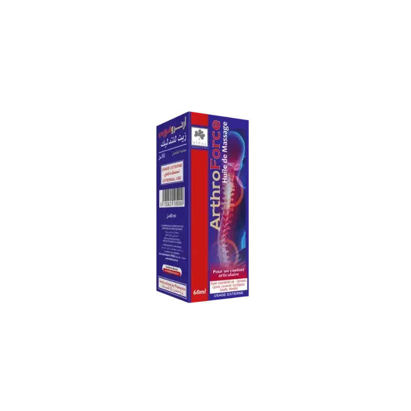 VITAL ARTHROFORCE HUILE DE MASSAGE 60ML est une huile de massage spécifiquement conçue pour apaiser les douleurs articulaires et musculaires, ainsi que les raideurs. Sa formule est une synergie d'huiles essentielles (comme la Gaulthérie, le Romarin) et d'extraits de plantes (comme l'Arnica et l'Harpagophytum) reconnues pour leurs propriétés anti-inflammatoires, analgésiques et décontractantes. Cette huile est un allié précieux pour soulager les inconforts liés à l'arthrose, aux efforts physiques, ou aux tensions musculaires, et pour améliorer la souplesse articulaire.