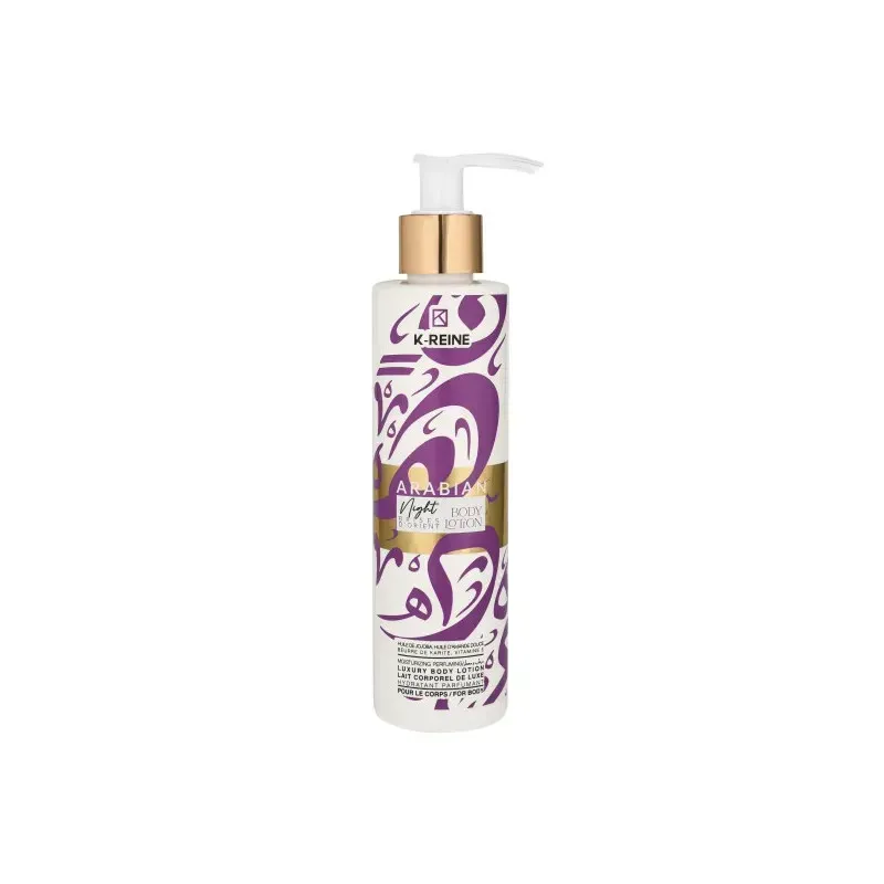 La K-REINE Lotion Hydratante hydrate intensément la peau et les cheveux. Elle adoucit et nourrit la peau sans laisser de résidu gras. Elle apporte brillance et souplesse aux cheveux. Elle offre un parfum oriental et envoûtant "Arabian Night". Sa formule est légère et non collante. Le format de 200ml est pratique pour un usage quotidien.