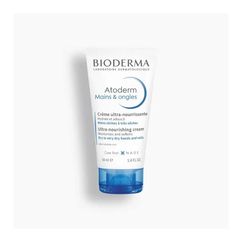 BIODERMA ATODERM CRÈME MAINS & ONGLES ULTRA NOURRISSANTE 50ML est un soin quotidien spécifiquement formulé pour nourrir, réparer et protéger les mains très sèches, abîmées, irritées ou gercées, tout en fortifiant les ongles. Véritable "gant" nutritif, elle offre un soulagement immédiat et une protection durable contre les agressions extérieures (froid, vent, lavages fréquents, produits ménagers).