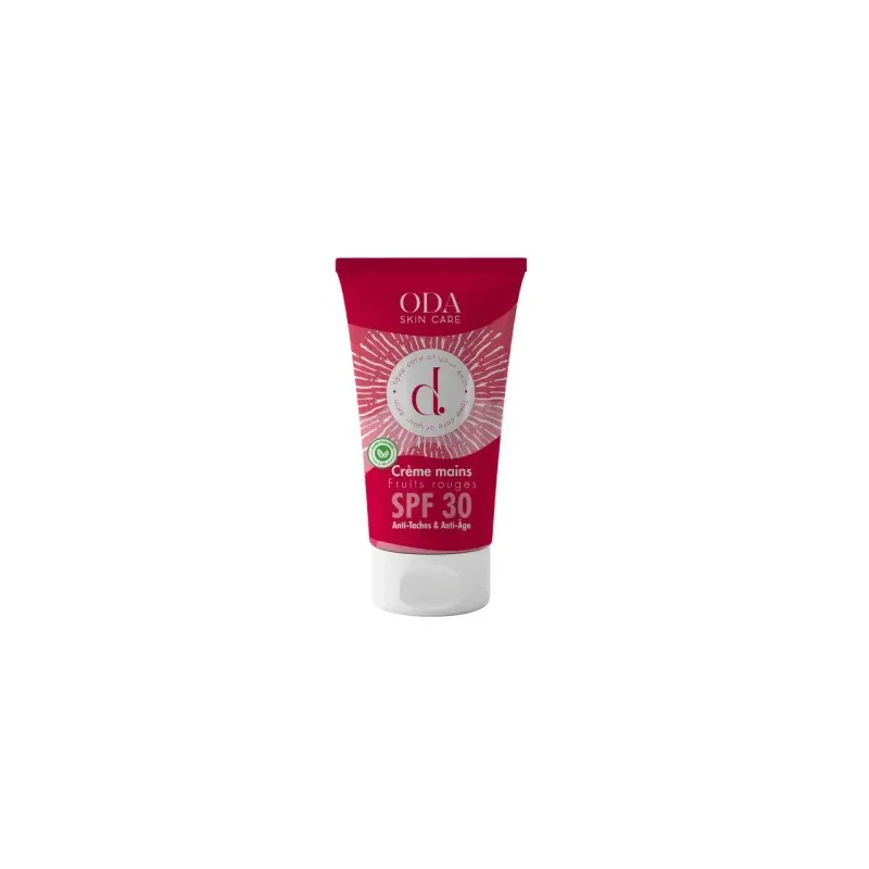 Cette crème mains ODA est un soin complet qui hydrate intensément, protège efficacement du soleil (SPF 30) et prévient les taches pigmentaires. Enrichie en fruits rouges, elle nourrit, illumine la peau et laisse les mains douces, lisses et délicatement parfumées.