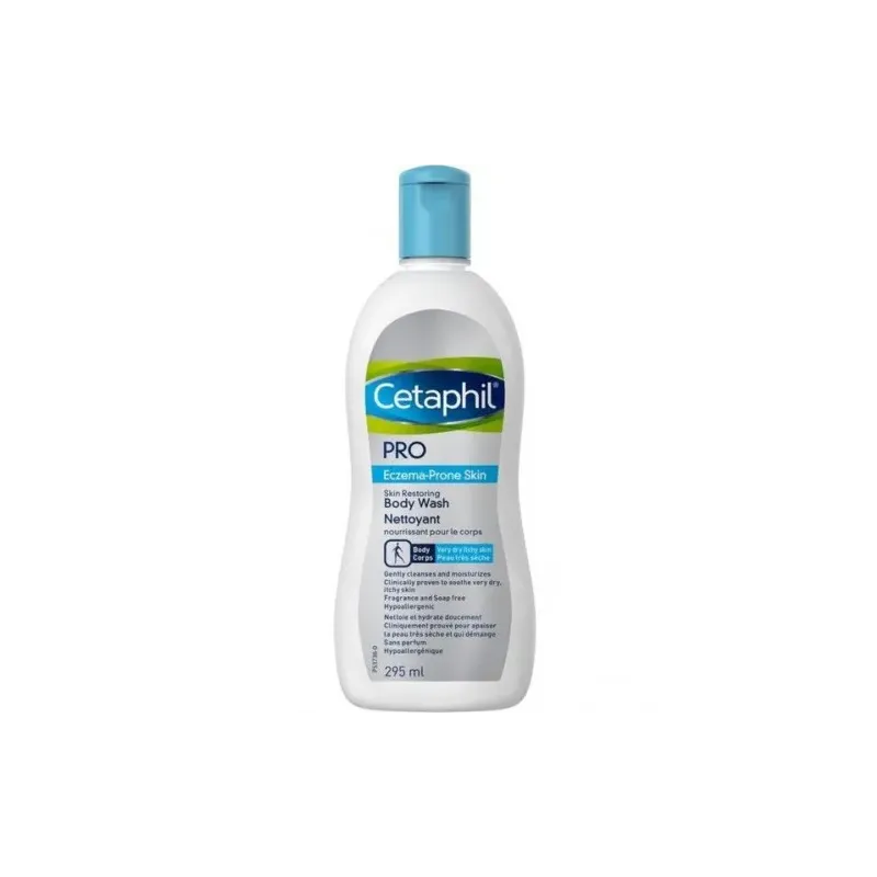 CETAPHIL PRO ECZEMA NETTOYANT BODY 295ML (également connu sous le nom de CETAPHIL PRO ECZEMA PRONE SKIN WASH) est un nettoyant corporel doux, spécifiquement formulé pour le nettoyage quotidien des peaux à tendance atopique (eczéma), très sèches, irritées et sujettes aux démangeaisons. Conçu pour nettoyer la peau sans la dessécher ni l'irriter, il respecte l'équilibre naturel de la peau fragile et soutient la restauration de sa barrière protectrice.