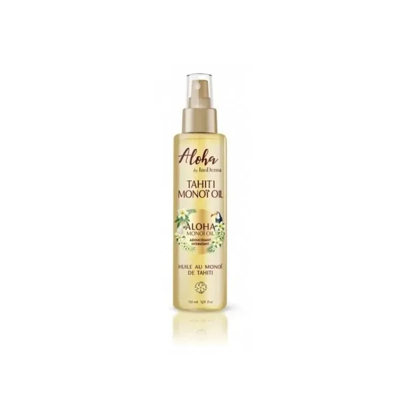 L'huile de Monoï INODERMA ALOHA en spray est le secret des îles pour une peau hydratée, un bronzage lumineux et des cheveux nourris, le tout dans un grand format pratique.