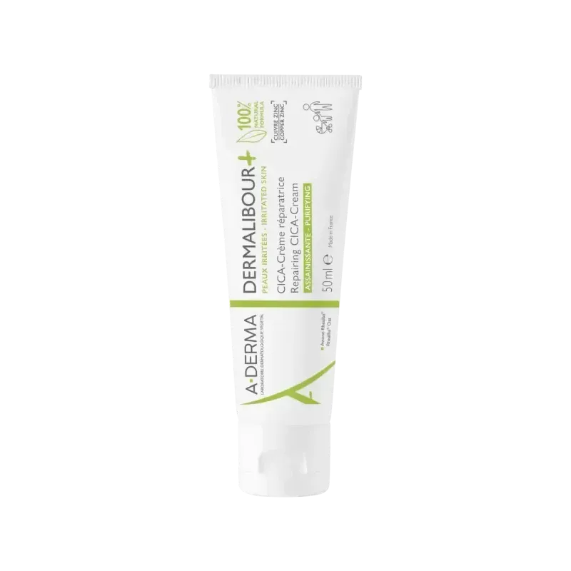 La A-DERMA DERMALIBOUR+ CICA CRÈME RÉPARATRICE est un soin d'urgence et de réparation conçu pour apaiser, assainir et favoriser la réparation épidermique des peaux irritées et fragilisées de toute la famille. C'est la solution incontournable pour faire face aux petits tracas du quotidien sur le visage, le corps, les muqueuses externes et même les paupières, quand la peau est rouge, pique, gratte ou tiraille. Sa formule 100% d'origine naturelle, enrichie en Extrait de Plantules d'Avoine Rhealba® et en complexe Cuivre-Zinc, agit efficacement dès 24 heures pour réparer la peau et limiter le risque de prolifération bactérienne. Sa texture agréable est facile à appliquer, résistante à l'eau, ne laisse pas de traces blanches et est parfaitement tolérée, même par les nourrissons dès la naissance.