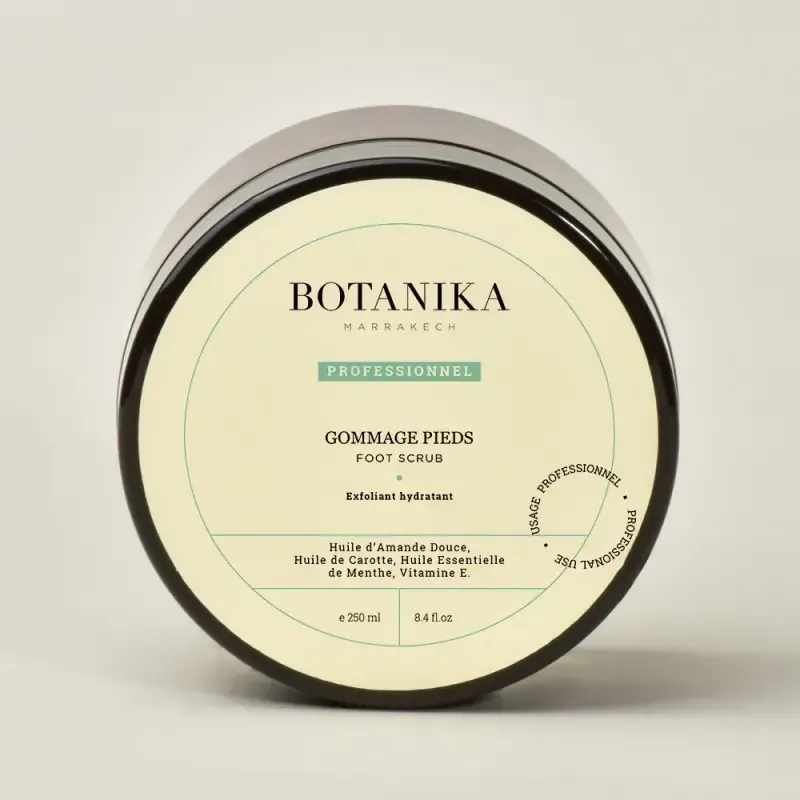 Le GOMMAGE PIEDS Soft feet de la gamme BOTANIKA MARRAKECH est un véritable soin rénovateur conçu spécifiquement pour l'épiderme souvent rugueux et sec des pieds. Il associe la poudre de noyau d'abricot à la poudre de figue de barbarie pour offrir une double action exfoliante douce mais efficace. Ce mélange permet d'éliminer les cellules mortes et les rugosités qui s'accumulent, favorisant ainsi le renouvellement cellulaire. Sa formule est enrichie en ingrédients nourrissants et intègre des actifs rafraîchissants comme le Menthol qui procure une sensation de fraîcheur immédiate et adoucit la peau. Après utilisation, la peau est infiniment lisse et est parfaitement préparée à absorber efficacement la crème hydratante appliquée par la suite.