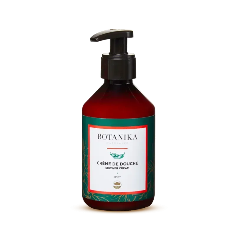 La CRÈME DE DOUCHE SPICY de la gamme BOTANIKA MARRAKECH est un soin lavant qui éveille les sens grâce à ses notes olfactives stimulantes. Sa formule onctueuse et crémeuse est conçue pour nettoyer la peau en douceur sans la dessécher, tout en respectant son équilibre naturel. Le secret de cette crème réside dans son enrichissement en extraits de feuilles d'Arganier et de Ginseng. Le parfum est particulièrement distinctif, mêlant les notes épicées de l'Orange et de la Cannelle, une combinaison qui procure une véritable sensation de chaleur et de bien-être, vous invitant à découvrir les secrets d'un rituel oriental privilégié. Elle laisse la peau parfaitement propre, douce et délicatement parfumée d'un sillage oriental et réconfortant.