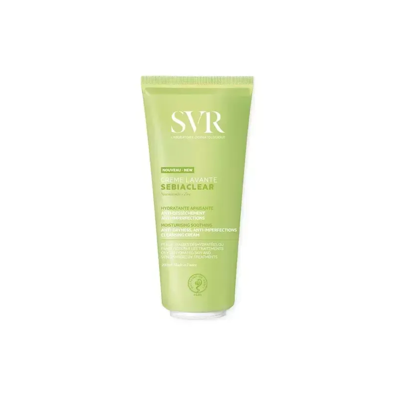La crème lavante SEBIACLEAR de SVR est un soin nettoyant purifiant et apaisant, spécialement formulé pour les peaux à tendance acnéique. Ce nettoyant onctueux est conçu pour réduire les imperfections tout en préservant le film hydrolipidique de la peau, souvent fragilisé par les traitements anti-acné. Enrichie en niacinamide (vitamine B3) et en gluconolactone, elle offre une action purifiante et apaisante sans agresser. La niacinamide aide à réguler la production de sébum et à réduire les rougeurs, tandis que la gluconolactone purifie la peau en douceur. Sa texture crème se transforme en une mousse fine et onctueuse qui élimine les impuretés et l'excès de sébum, laissant la peau propre, fraîche et confortable. Son format de 200 ml est pratique pour une utilisation quotidienne.