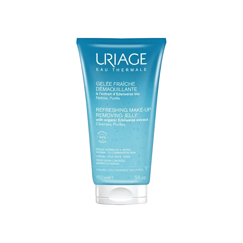 URIAGE Eau Thermale Gelée Fraîche Démaquillante 150ml est un nettoyant visage et démaquillant innovant à la texture gel qui se transforme en une mousse fine au contact de l'eau. Elle est spécialement conçue pour les peaux normales à mixtes, y compris sensibles, qui recherchent une sensation de pureté et de fraîcheur après le nettoyage.