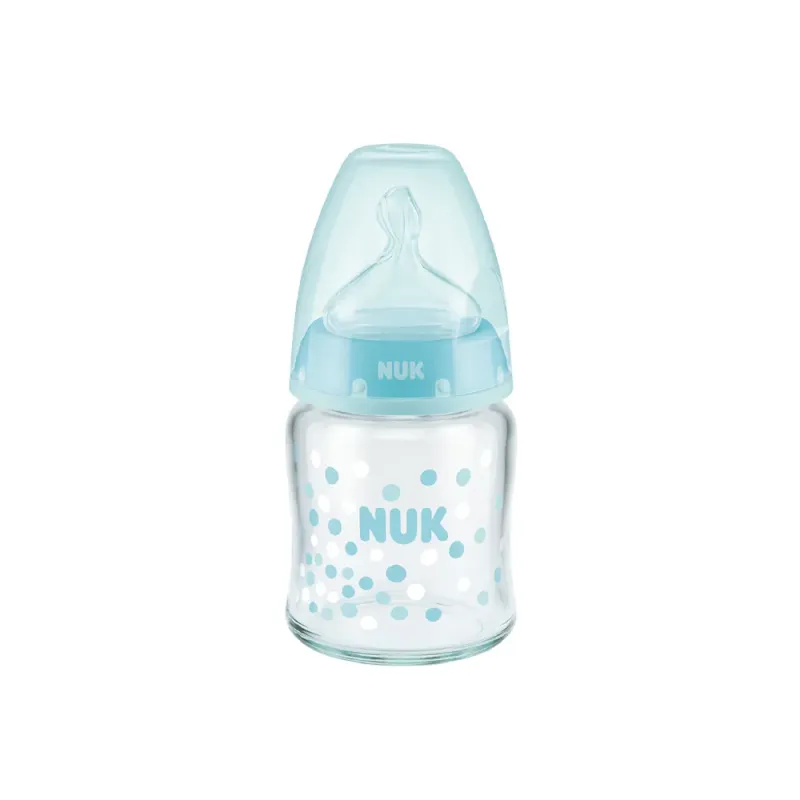Ce biberon NUK First Choice en verre de 120 ml est une option sûre et hygiénique, idéale pour les nouveau-nés et les bébés jusqu'à 6 mois. Sa petite contenance est parfaite pour les premières tétées, l'eau ou les petites quantités de lait.