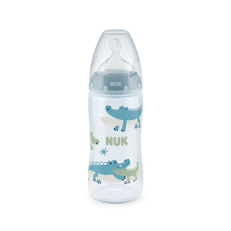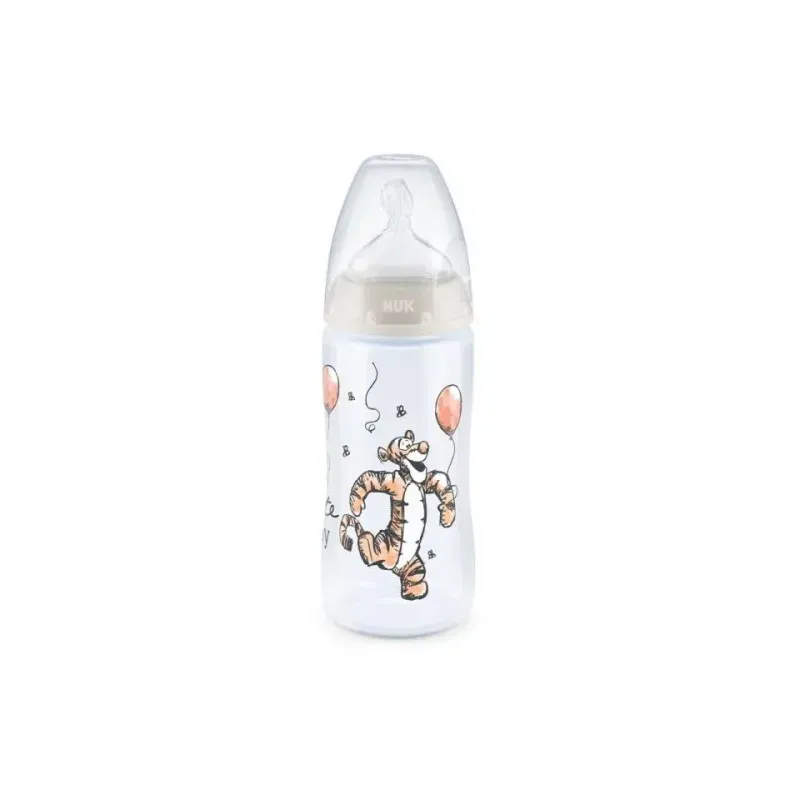 Le biberon est équipé de la tétine NUK First Choice+ en silicone. Sa forme orthodontique, inspirée du mamelon maternel, soutient le développement sain de la mâchoire et des dents de bébé, tout en permettant une succion naturelle et efficace. De plus, elle intègre le système anti-colique NUK Anti-Colic Air System, qui aide à prévenir l'ingestion d'air et, par conséquent, les coliques et l'inconfort digestif. Le col large du biberon facilite grandement le remplissage, le nettoyage et l'assemblage. La tétine fournie est généralement de taille M (débit moyen), adaptée au lait infantile.