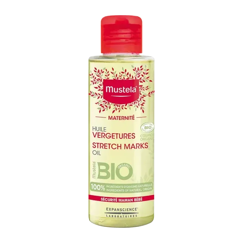 Mustela Huile Vergetures 105ml est un soin certifié biologique, formulé spécifiquement pour prévenir l'apparition des vergetures pendant et après la grossesse.
