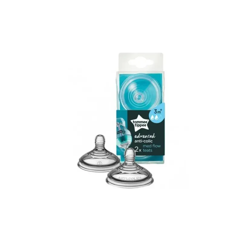 Ce lot de 2 Tétines Advanced Anti-Colique à Débit Moyen (Medium Flow) est spécifiquement conçu pour les bébés de 3 mois et plus (3M+) qui utilisent les biberons de la gamme Advanced Anti-Colique de Tommee Tippee. À cet âge, la succion du bébé devient plus vigoureuse, et un débit plus rapide que le débit lent est nécessaire pour que le repas reste confortable et satisfaisant. Ces tétines conservent la forme imitant le sein pour une acceptation facile, mais sont dotées d'une valve unique à leur base, indispensable pour interagir correctement avec le tube de ventilation du biberon. Le débit moyen est le juste équilibre pour les nourrissons de 3 à 6 mois, garantissant à la fois un repas efficace et le maintien de la réduction des symptômes de coliques.