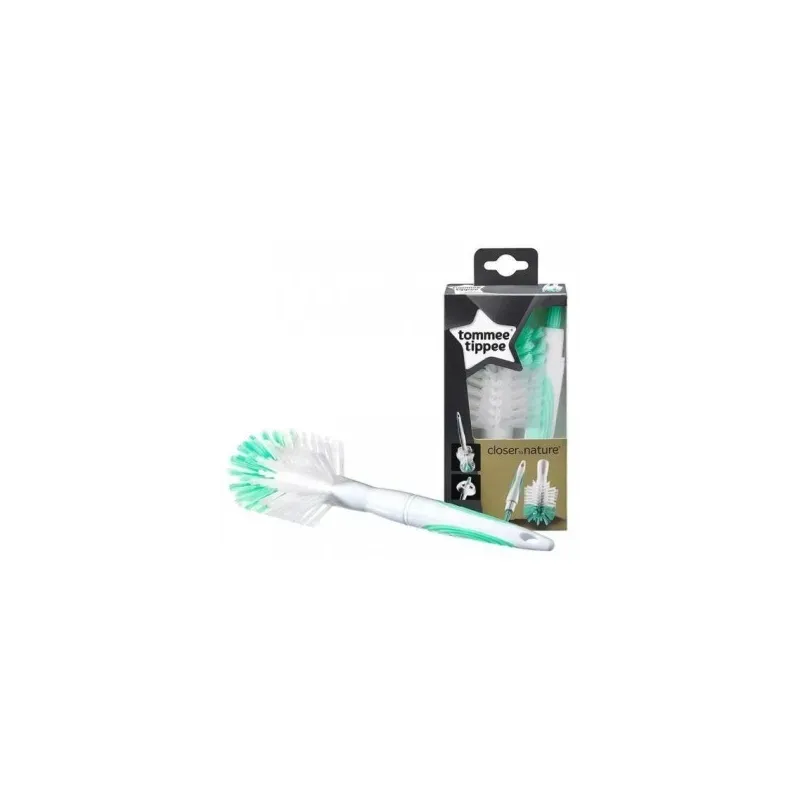 Goupillon Mixte Closer to Nature de Tommee Tippee, outil 2-en-1 avec tête flexible et poils en nylon, idéal pour un nettoyage hygiénique et en profondeur des biberons et tétines.