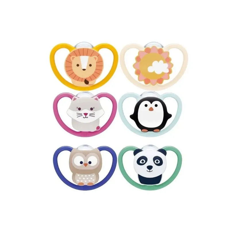 Cette sucette se caractérise par sa tétine en silicone extra-douce et sa forme orthodontique NUK originale, inspirée du mamelon maternel. Cette forme soutient le développement sain de la mâchoire, des dents et du palais de votre bébé. Ce qui distingue particulièrement la gamme "Space", c'est son bouclier extra-large et doté de très grandes ouvertures de ventilation. Cette conception permet une circulation maximale de l'air autour de la bouche de bébé, évitant l'accumulation de salive et réduisant considérablement le risque d'irritations ou de rougeurs cutanées.