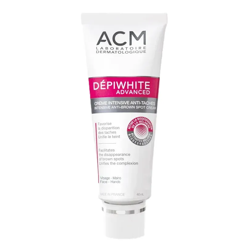 La Crème Dépigmentante Intensive Dépiwhite Advanced d'ACM est un traitement de référence pour les hyperpigmentations épidermiques. Grâce à une combinaison synergique d'actifs dépigmentants, elle agit à plusieurs niveaux du processus de pigmentation pour offrir une efficacité optimale, même sur les taches les plus tenaces.