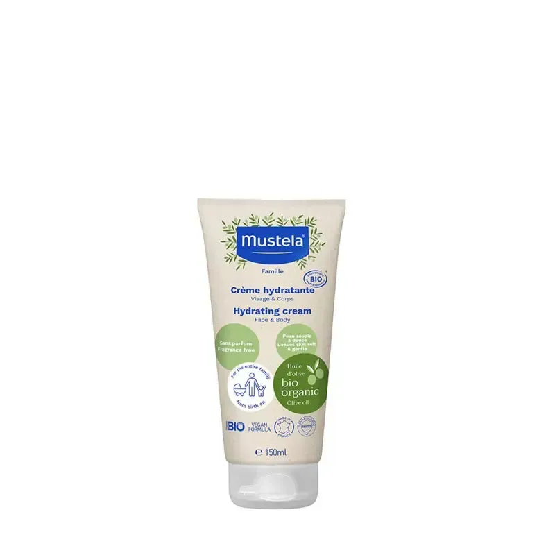 Mustela BIO Crème Hydratante Visage et Corps 150ml est un soin hydratant quotidien, certifié bio, conçu pour la peau délicate des bébés et enfants dès la naissance (y compris les bébés sortis de néonatologie), et convient également à toute la famille.