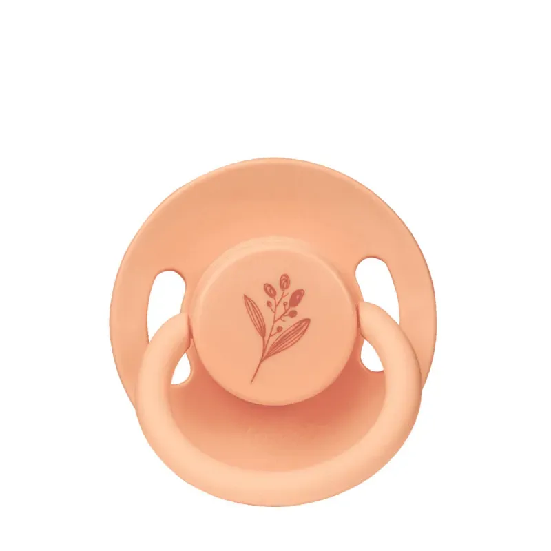 La tétine est en silicone 100% alimentaire et sans BPA, et le bouclier avec l'anneau sont en plastique sans BPA. Stérilisez la sucette avant la première utilisation et nettoyez-la quotidiennement. Inspectez-la attentivement pour détecter tout signe d'usure ou de dommage et remplacez-la au moindre défaut (il est recommandé de la remplacer tous les 1 à 2 mois). Ne laissez jamais votre bébé sans surveillance avec la sucette, surtout pendant le sommeil.