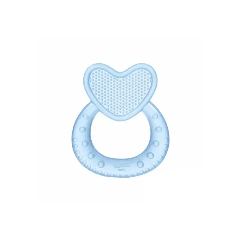Un anneau de dentition de Wee Baby conçu pour soulager les gencives douloureuses des bébés lors des poussées dentaires. Il offre une surface à mordiller qui masse et réconforte l'enfant, tout en étant fabriqué avec des matériaux sûrs.
