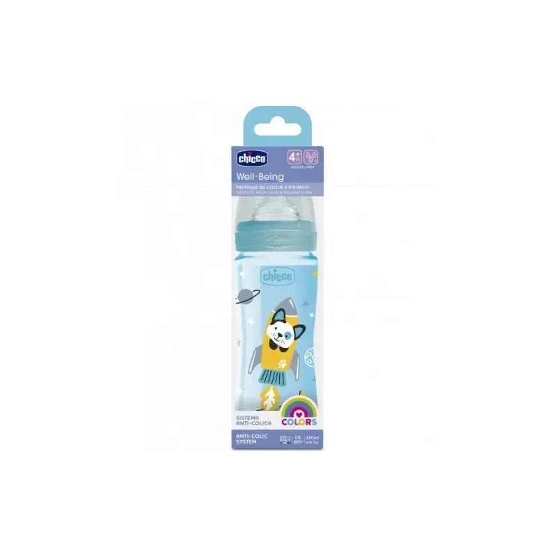 Chicco Biberon Well-Being 330ml . Tétine silicone 4M+