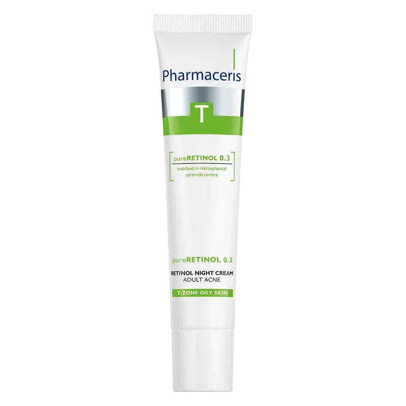 La Pharmaceris T Pure Retinol 0.3 Crème de Nuit 40ML est un soin dermatologique de nuit intensif conçu pour les peaux adultes sujettes à l'acné, aux imperfections, aux pores dilatés et aux signes de vieillissement (rides, manque de fermeté). Ce produit vise à régénérer la peau, à réduire les imperfections et à lisser les ridules.