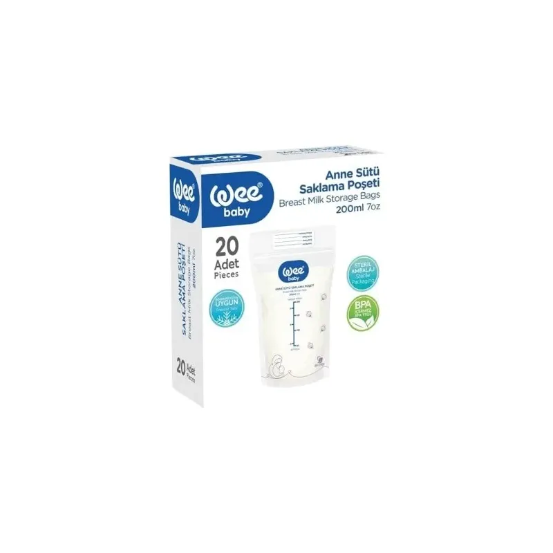 Des sachets pré-stérilisés conçus par Wee Baby pour le stockage hygiénique du lait maternel. Ce paquet de 20 sachets est idéal pour conserver le lait au réfrigérateur ou au congélateur, offrant une solution pratique et sûre aux mères qui tirent leur lait.