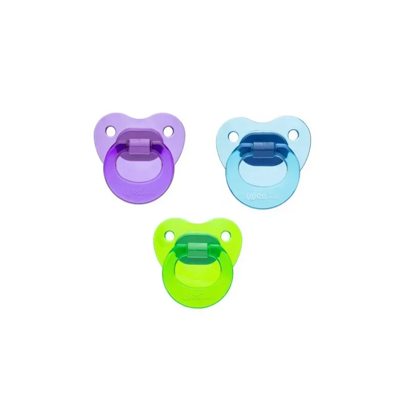 Une sucette Wee Baby conçue pour les bébés de 6 à 18 mois. Identifiée par la référence 112, elle se distingue par ses couleurs vives et sa tétine en silicone souple. Elle vise à apaiser et réconforter les bébés, offrant sécurité et un design stimulant.