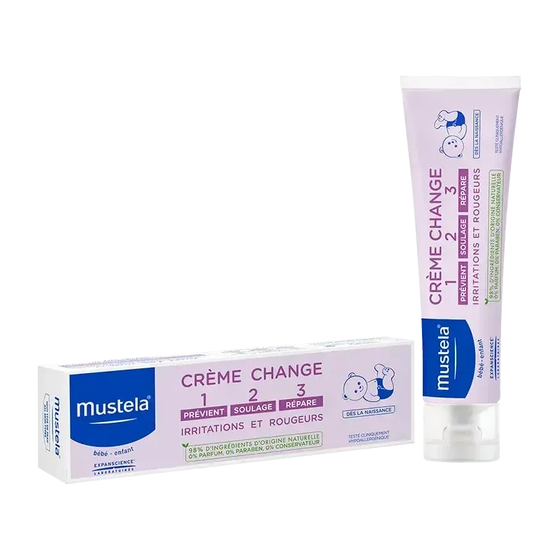 MUSTELA CRÈME DE CHANGE 1-2-3 100ML est un soin complet pour le siège de bébé, conçu pour prévenir, soulager et réparer les irritations et les rougeurs de l'épiderme fessier. Elle est utilisable dès la naissance (hors prématurés).