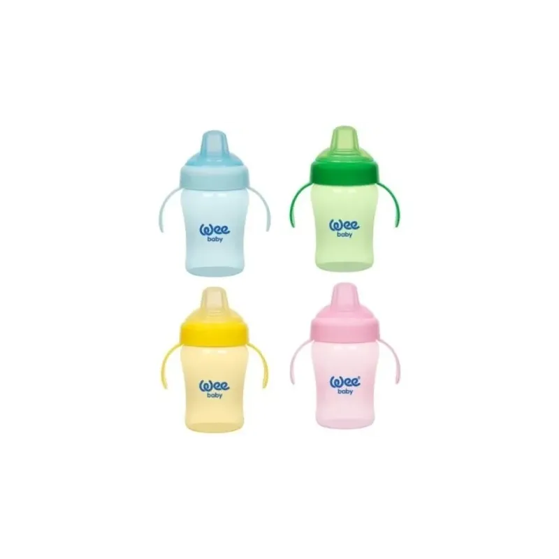 Une tasse d'apprentissage Wee Baby, conçue pour les bébés et jeunes enfants. D'une capacité de 240 ml, cette tasse en Polypropylène (PP) sans BPA se distingue par son système anti-fuite qui prévient les déversements. Elle est idéale pour aider l'enfant à passer du biberon à la tasse, en toute propreté.