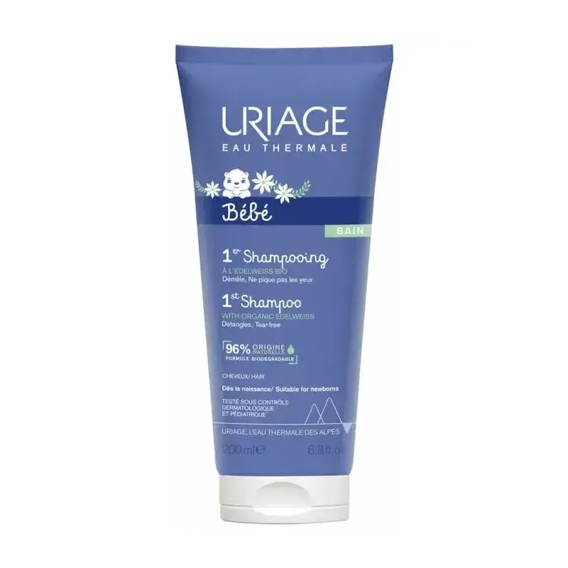 URIAGE Bébé 1er Shampooing Extra-Doux Cheveux 200ml est un shampooing moussant ultra-doux, spécialement formulé pour le nettoyage quotidien des cheveux délicats et du cuir chevelu fragile des bébés et des nourrissons, dès la naissance. Il nettoie en douceur sans agresser et facilite le démêlage.