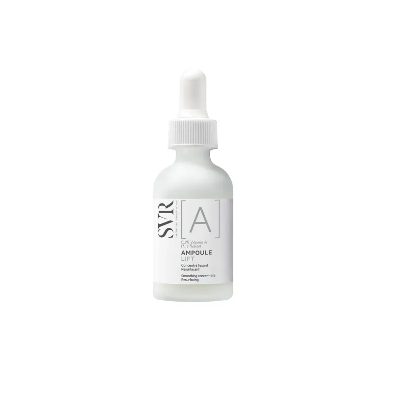 L'Ampoule A Lift de SVR est un concentré lissant et repulpant conçu pour corriger les signes du vieillissement et les imperfections sur les peaux normales à grasses. Ce sérum est formulé avec 0,3% de rétinol pur, l'un des actifs anti-âge les plus puissants, qui agit en profondeur pour lisser les rides, raffermir la peau et affiner le grain de peau. En favorisant le renouvellement cellulaire, il aide à estomper les marques, les pores dilatés et les irrégularités. Sa texture ultra-fluide et non grasse pénètre instantanément sans laisser de film collant, ce qui en fait un excellent allié pour les peaux mixtes à grasses. Il agit également sur l'éclat du teint, le rendant plus uniforme et lumineux.