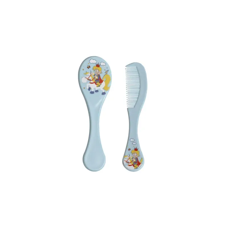 Cet ensemble brosse et peigne est indiqué pour le soin quotidien des cheveux et du cuir chevelu des bébés, de la naissance et au-delà. Il est idéal pour démêler, coiffer et masser délicatement, aidant également à gérer la croûte de lait.