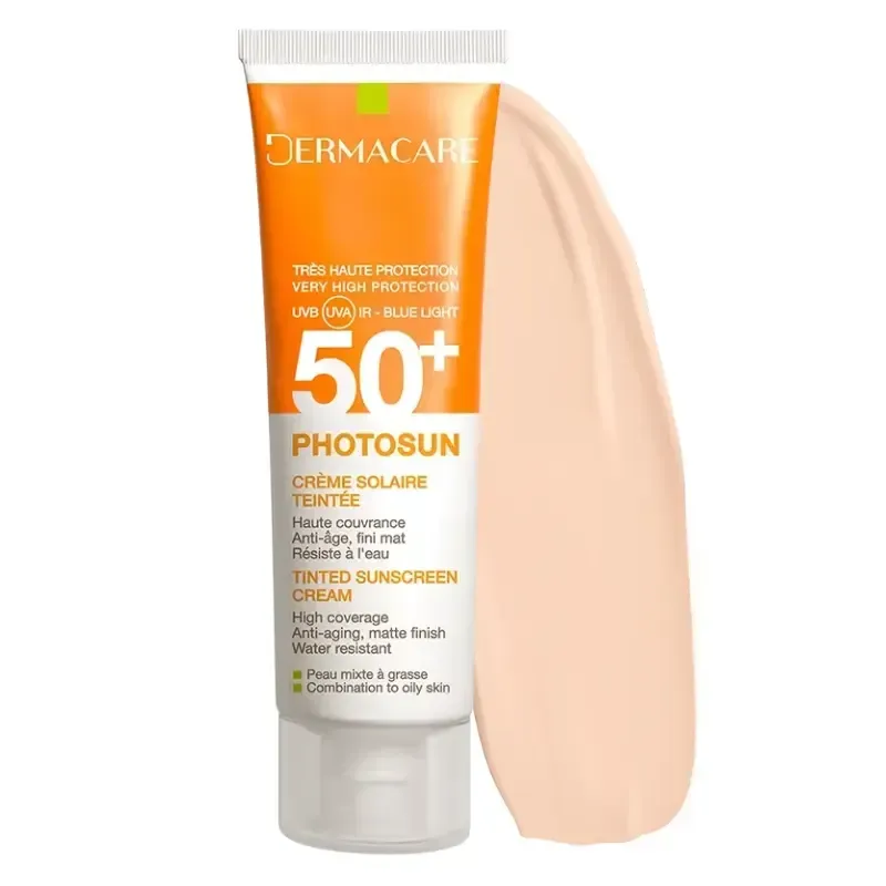 La Dermacare Photosun Crème Solaire Teintée SPF 50+ est un soin deux-en-un : une protection solaire essentielle et un embellisseur de teint. Elle protège efficacement contre les coups de soleil, le photovieillissement (rides, taches pigmentaires) et les dommages cellulaires profonds causés par le soleil. Sa formulation est pensée pour répondre aux besoins des peaux sujettes à la brillance et aux imperfections, garantissant une protection optimale et un teint unifié.