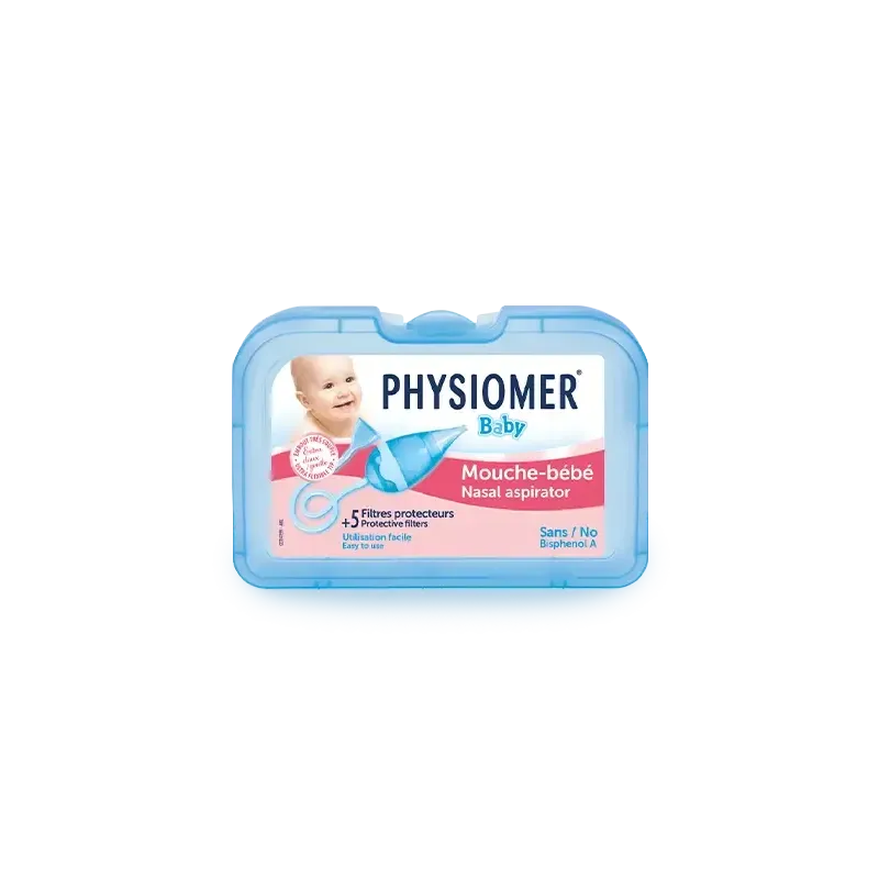 Le Mouche Bébé PHYSIOMER est un dispositif d'aspiration nasale conçu pour aider les parents à nettoyer délicatement et efficacement le nez de leur nourrisson ou jeune enfant. Ce kit complet inclut un embout souple et cinq filtres jetables. Le Mouche Bébé fonctionne par aspiration buccale, permettant aux parents de contrôler la force de l'aspiration et de retirer les sécrétions nasales encombrantes qui gênent la respiration de bébé. Les filtres jetables garantissent une hygiène parfaite et empêchent les mucosités de remonter, évitant ainsi toute contamination entre le bébé et le parent.