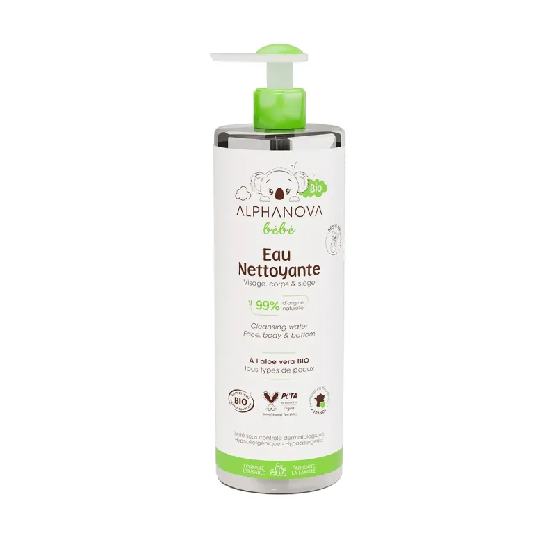 Le Alphanova Eau Nettoyante Bio 400ml est une solution micellaire biologique, sans rinçage et sans alcool, formulée pour nettoyer en douceur, apaiser et rafraîchir la peau sensible des bébés et des adultes, grâce à sa haute tolérance et ses ingrédients naturels.