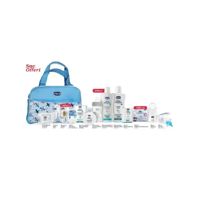 Ce sac tout-en-un comprend une sélection judicieuse de produits Chicco, répondant aux besoins fondamentaux du bébé et des parents en déplacement :
