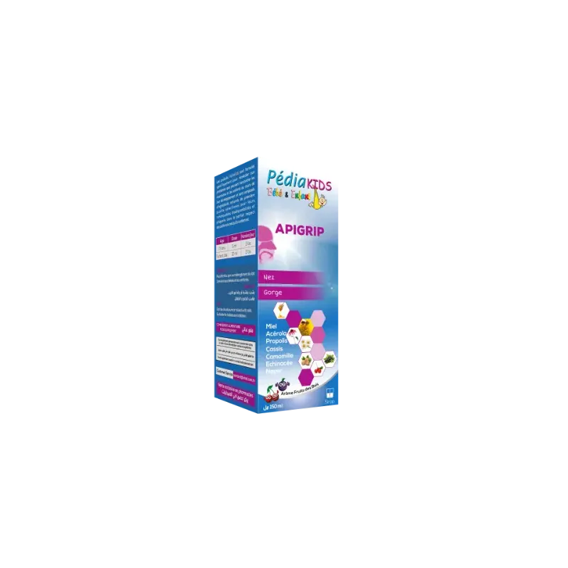 Le VITAL Pediakids Apigrip 150ml est un complément alimentaire sous forme de sirop ou de solution buvable, spécialement formulé pour les enfants afin de soutenir leurs défenses immunitaires et les aider à faire face aux agressions hivernales (rhumes, états grippaux, infections ORL). Le nom "Apigrip" suggère une combinaison d'ingrédients issus de la ruche (comme le miel, la propolis, la gelée royale) et/ou d'extraits de plantes reconnus pour leurs propriétés immunostimulantes et protectrices.
