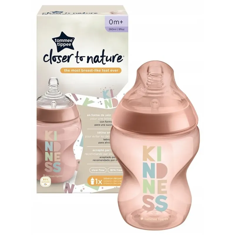 Biberon Closer to Nature Kindness Tommee Tippee (260 ml, 0M+) avec tétine imitant le sein et valve anti-colique, doté d'un design réconfortant, idéal pour une alimentation confortable dès la naissance.