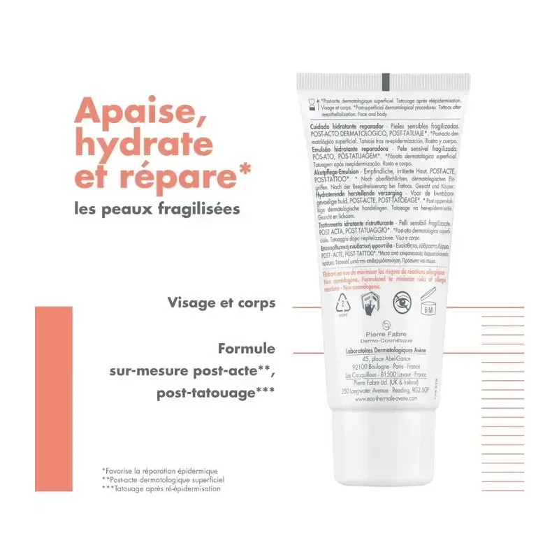 Que ce soit après une intervention esthétique ou la réalisation d'un tatouage, la peau est fragilisée, irritée, et a besoin d'un soin spécifique pour bien se réparer et éviter l'apparition de marques indésirables. Le Soin Hydratant Réparateur Post Acte Post Tatouage Avène Cicalfate+ est conçu pour répondre précisément à ces besoins, en agissant sur l'apaisement, l'hydratation et la réparation épidermique.