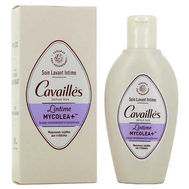 Soin lavant intime Rogé Cavaillès Mycôléa+ 200ML, sans savon, formulé avec le Complexe Mycôléa+ et un pH alcalin pour apaiser rapidement les démangeaisons et lutter contre la prolifération fongique en cas d'irritations ou de mycose.