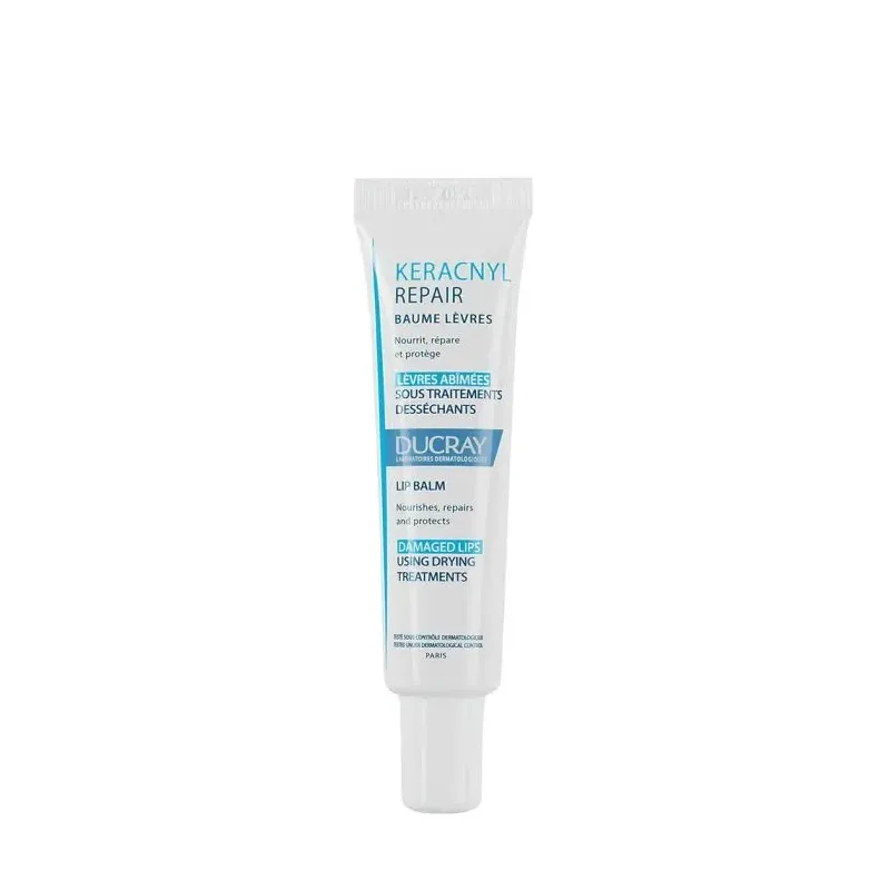 Le DUCRAY KERACNYL REPAIR BAUME À LÈVRES 15ML est un soin de secours ultra-nourrissant et réparateur, spécialement élaboré pour compenser la sécheresse labiale sévère et les gerçures induites par les traitements médicamenteux anti-acnéiques par voie orale, notamment l'isotrétinoïne. Sa formulation riche et sa texture pommade agissent comme un véritable pansement protecteur qui isole et répare les lèvres très abîmées, permettant ainsi de maintenir un confort optimal tout au long du traitement.