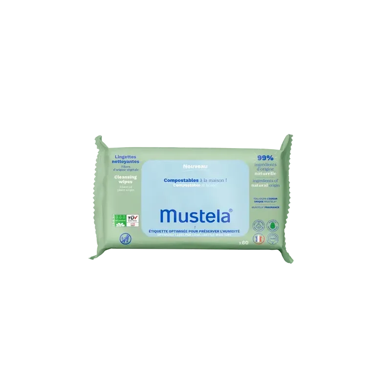 MUSTELA LINGETTES NETTOYANTES À L'AVOCAT BIO 60 LINGETTES sont des lingettes biodégradables conçues pour nettoyer en douceur et efficacement le visage, les mains et le siège des bébés, dès la naissance (hors prématurés).